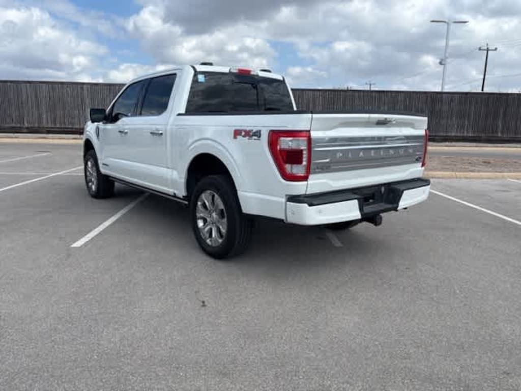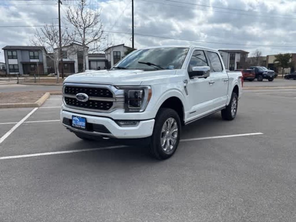F-150 Platinum, 4D SuperCrew, 3.5L PowerBoost Full-Hybrid V6, 10-Speed Automatic, 4WD, Star White Metallic Tri-Coat, Black w/Leather Trim Seats w/Heated 2nd Row, 360 Degree Camera, 4x4 FX4 Off-Road Bodyside Decal, Active Park Assist 2.0, Bed Utility Package, BoxLink, Class IV Trailer Hitch Receiver, Electronic Locking w/3.31 Axle Ratio, Equipment Group 701A High, Extended Range 36 Gallon Fuel Tank, Ford BlueCruise 1.0, FX4 Off-Road Package, Hill Descent Control, Integrated Trailer Brake Controller, LED Box Lighting, Max Trailer Tow Package, Monotube Rear Shocks, Off-Road Tuned Front Shock Absorbers, Power Tailgate, Pro Trailer Backup Assist & Pro Trailer Hitch Assist, Radio: B&O Unleashed Sound System by Bang & Olufsen, Rock Crawl Mode, Tailgate Step w/Tailgate Work Surface, Tray Style Floor Liner.