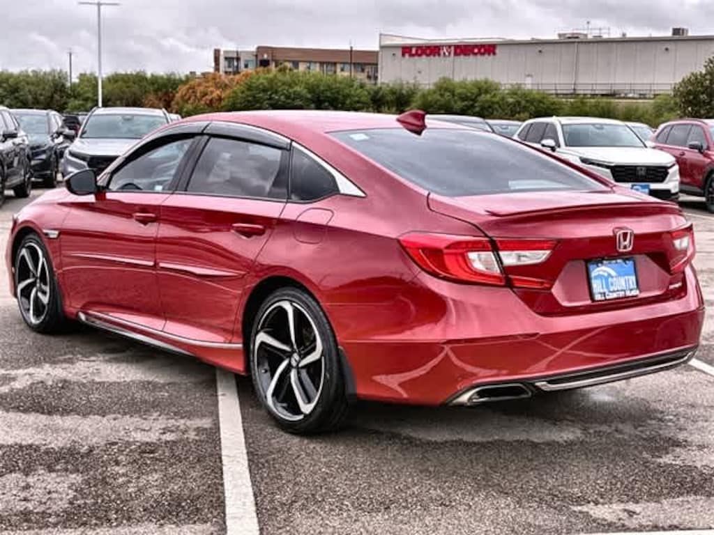 Accord Sport, 4D Sedan, 1.5T I4 DOHC 16V Turbocharged VTEC, CVT, FWD, Radiant Red Metallic, Black w/Cloth Seat Trim.